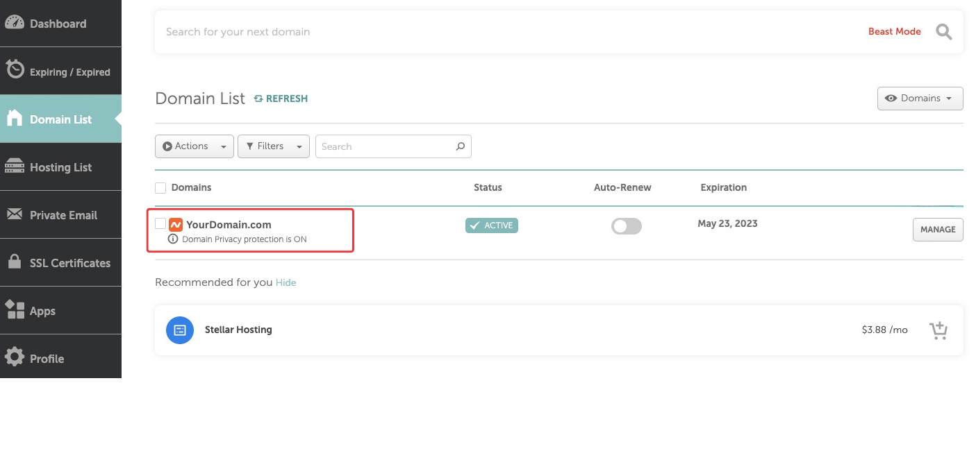 1. Domain Registrar Screenshot