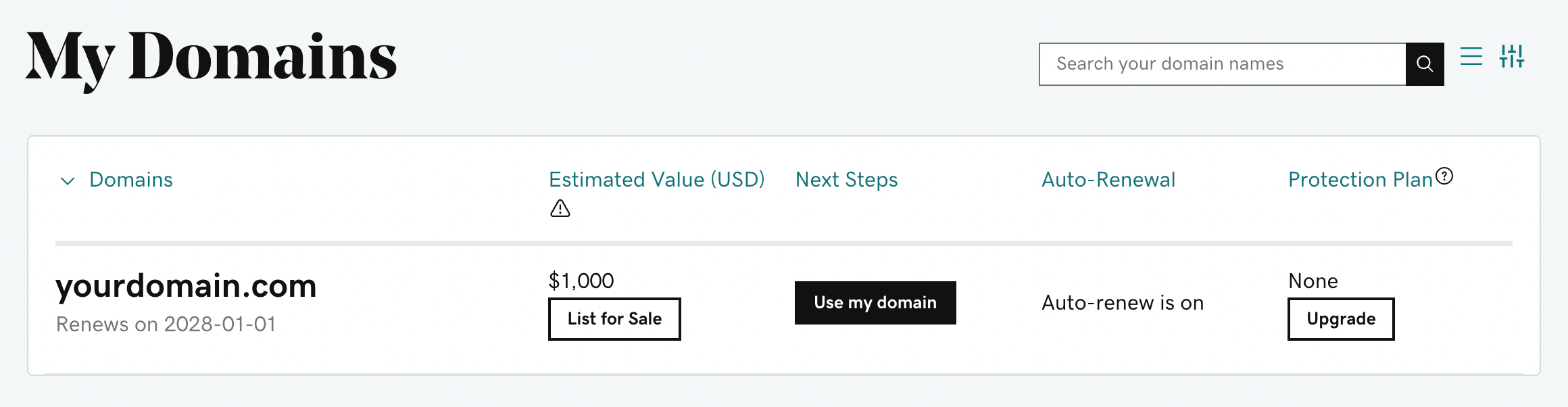 - Your domain name